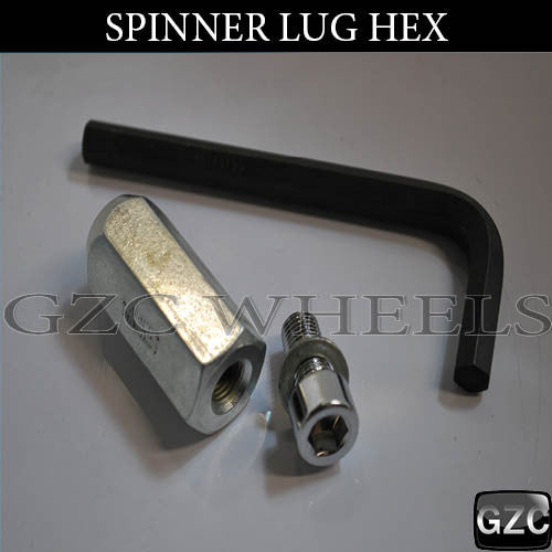 Spinner Installation Kit includes 12 lugs, 12 screws, and 1 key for installing bolt-on spinners. Thread size is 12x1.75 and is 2.25" long.